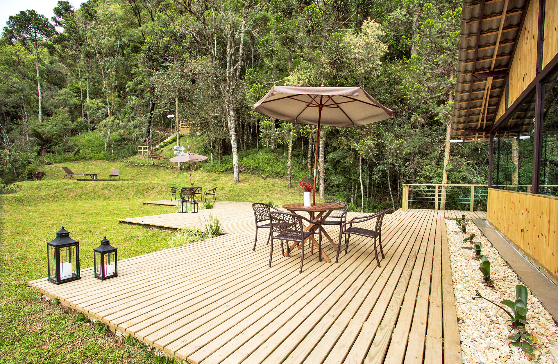 Pensando en la comodidad de nuestros huéspedes y en su interacción, Pousada Valle Avencal desarrolló un espacio habitable en un formato de cubierta de madera. este espacio, nuestra audiencia pueda compartir experiencias, charla "dentro", disfrutar de todas las exuberante entorno natural, tener una vista del pequeño lago que rodea los fondos albergue o, simplemente, relajarse leyendo un libro deseado en un sillón cómodo.